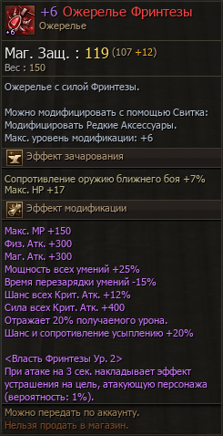Что касается вероятности успешной модификации: шанс заточки редкого аксессуара с +5 на +6 составляет 8% при использовании обычного свитка и всего 0,1% стабильным свитком.
