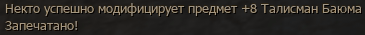 На сервере Wolf1 заточили +8 Талисман Баюма